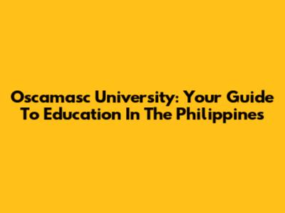 Oscamasc University: Your Guide To Education In The Philippines