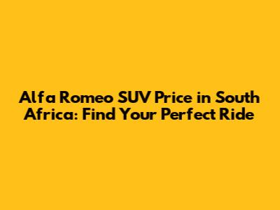 Alfa Romeo SUV Price In South Africa: Find Your Perfect Ride