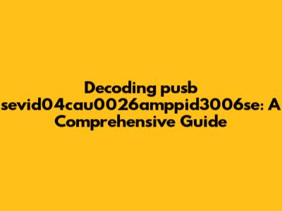 Hey guys, let's dive into the fascinating world of "pusb sevid04cau0026amppid3006se." It sounds like a mouthful, right? Don't worry, we're going to break it down piece by piece so that you can understand what it is and its significance. This guide is your one-stop shop for understanding this seemingly complex term. We will unravel its meaning, explore its potential uses, and provide you with a comprehensive understanding. Whether you're a tech enthusiast, a student, or just curious, this article will equip you with the knowledge to navigate this topic with confidence. So, buckle up, and let's get started on this exciting journey of discovery. We'll start by understanding what each part of this identifier means and how they connect. Understanding the individual components is key to understanding the bigger picture. We'll explore the possible contexts in which this identifier might appear and discuss its importance in each case. The goal here is to make this complex subject easy to understand, even if you are not tech-savvy. We'll be using clear and concise language, avoiding technical jargon wherever possible. The whole idea is to help you get a solid understanding, and feel confident discussing the topic.
