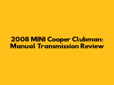 2008 MINI Cooper Clubman: Manual Transmission Review