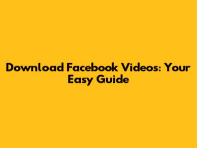 Download Facebook Videos: Your Easy Guide