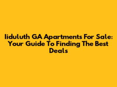 Iiduluth GA Apartments For Sale: Your Guide To Finding The Best Deals