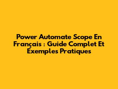 Power Automate Scope En Français : Guide Complet Et Exemples Pratiques