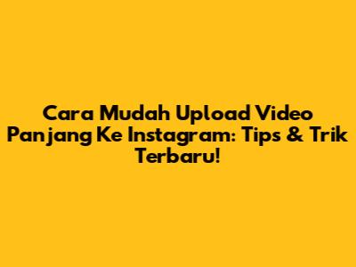 Cara Mudah Upload Video Panjang Ke Instagram: Tips & Trik Terbaru!