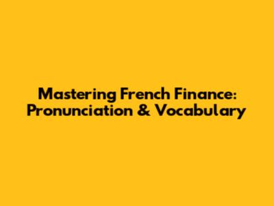 Mastering French Finance: Pronunciation & Vocabulary