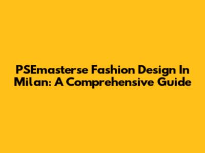 PSEmasterse Fashion Design In Milan: A Comprehensive Guide
