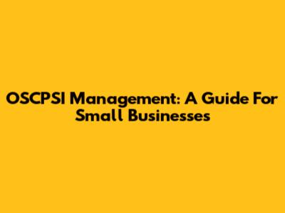 OSCPSI Management: A Guide For Small Businesses