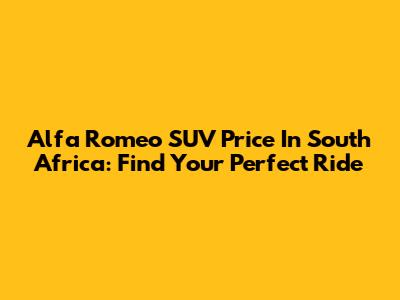 Alfa Romeo SUV Price In South Africa: Find Your Perfect Ride