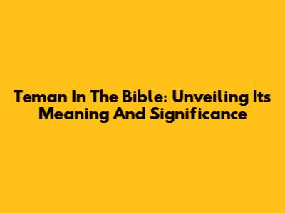 Teman In The Bible: Unveiling Its Meaning And Significance