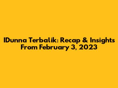 IDunna Terbalik: Recap & Insights From February 3, 2023