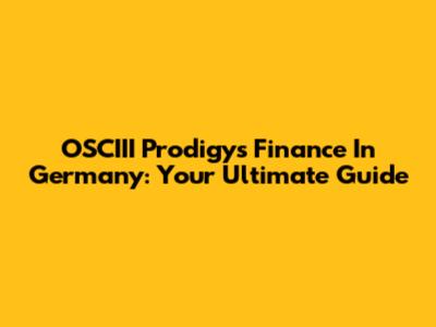 OSCIII Prodigy's Finance In Germany: Your Ultimate Guide