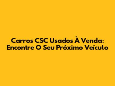Carros CSC Usados À Venda: Encontre O Seu Próximo Veículo