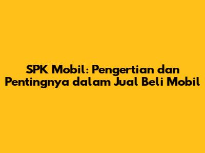 SPK Mobil: Pengertian Dan Pentingnya Dalam Jual Beli Mobil