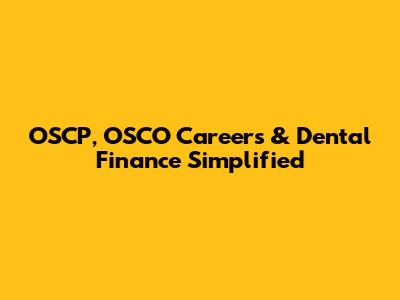 OSCP, OSCO Careers & Dental Finance Simplified